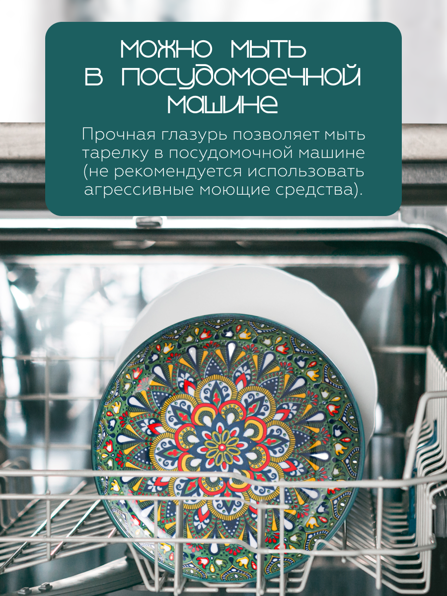 Восточная сказка на Вашем столе! Взрыв красок, симфония форм, танец узоров – все это объединилось невероятно выразительной керамической тарелке Homium Kitchen Multi серии Мехроб. Тарелка с традиционным узбекским орнаментом стилизована под национальный ляган для подачи восточного плова, бешбармака и других блюд. Посуда станет идеальным фоном для блюда, подчеркнув его насыщенный вкус и аромат.