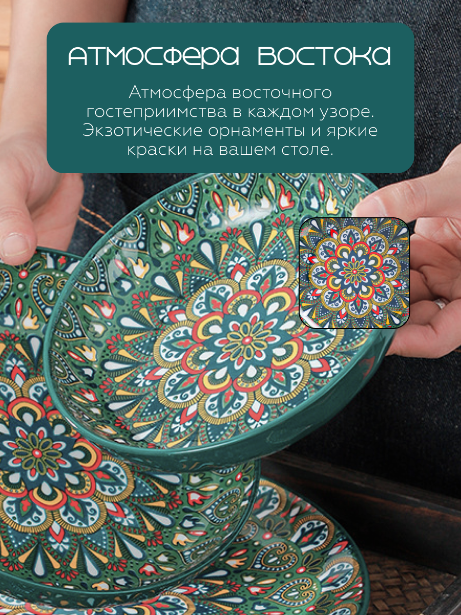 Если вы хотите добавить в свою жизнь ярких красок и создать неповторимую атмосферу на своем столе, то эта керамическая тарелка – именно то, что вам нужно. Восточная посуда станет не только функциональным предметом, но и настоящим талисманом, который будет приносить в ваш дом радость, счастье и процветание.