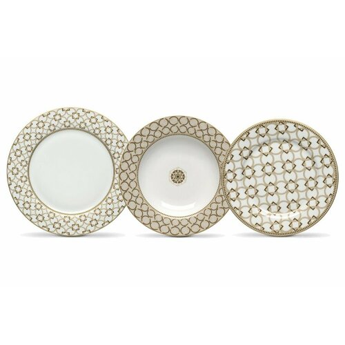 Состав набора: 6 тарелок обеденных 27 см; 6 тарелок суповых 21,5 см; 6 тарелок закусочных19,5 см, белых Декор: Геометрический орнамент Цвет: мультиколор Без индивидуальной упаковки Особенности: Мыть тёплой водой с применением ЖМС. Можно использовать в СВЧ и посудомоечной машине Набор поставляется в нескольких упаковках.
