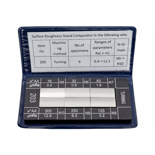 Набор образцов шероховатости поверхности из 6шт, Ra 0.4 - 12.5 GRIFF D125011 разработан для визуального и тактильного сравнения поверхностей, с различным качеством и точностью обработки. В наборе имеются образцы, полученные путем точения.