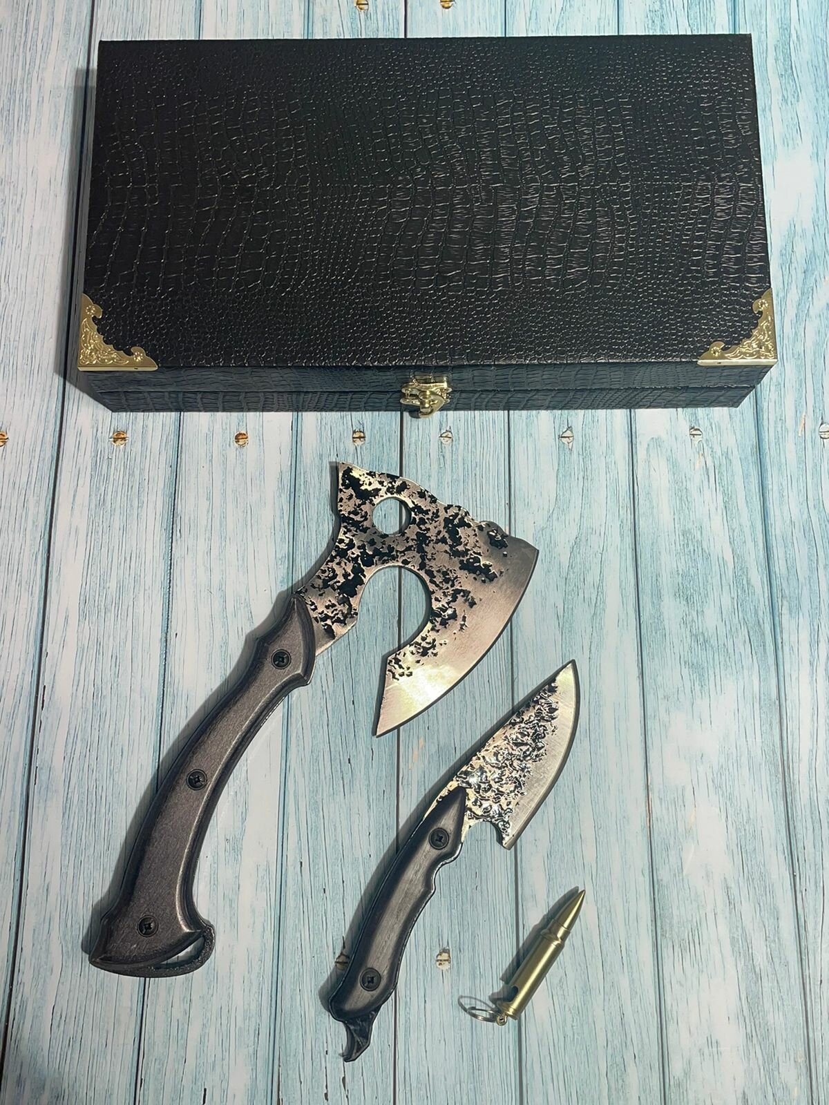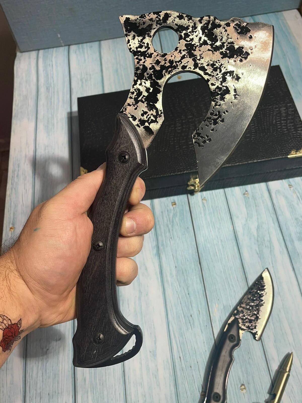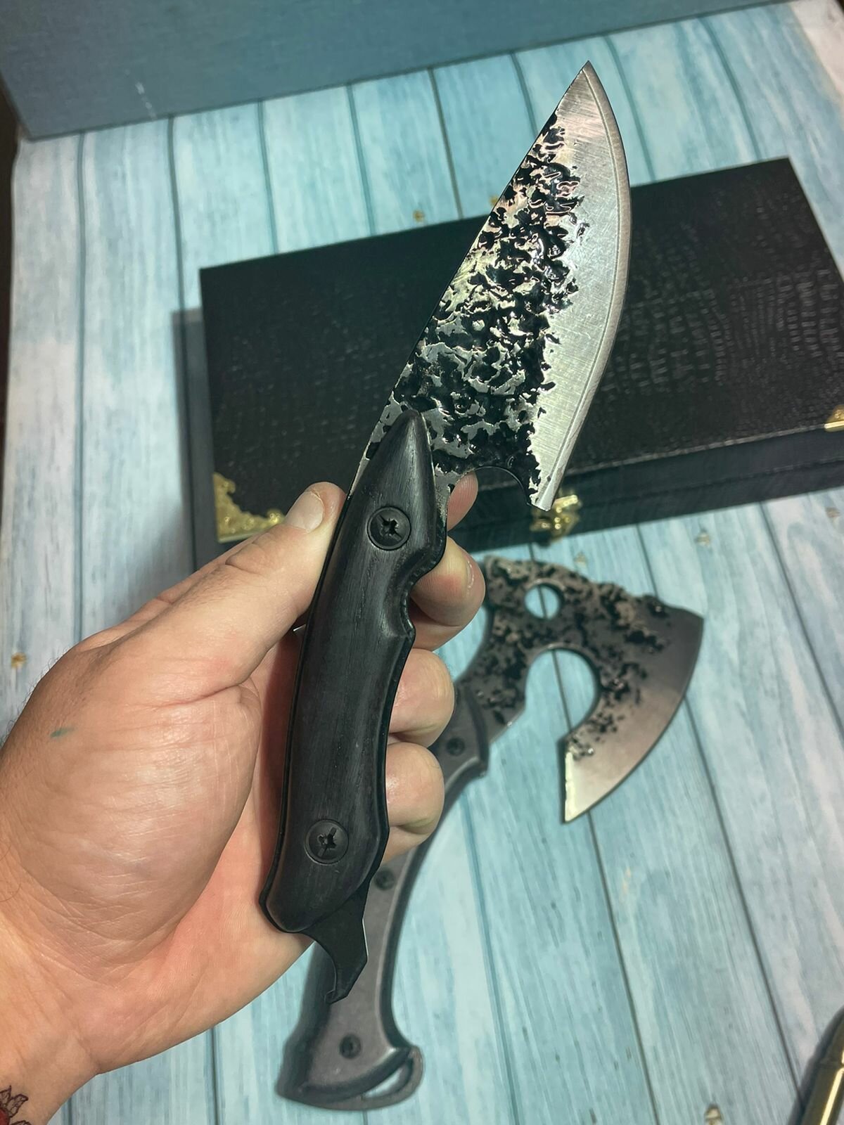 Выбирая набор "Охотник - Топор и Нож кованые", вы получаете не только два полезных инструмента, но и стильный аксессуар, который будет радовать вас своей функциональностью и качеством.