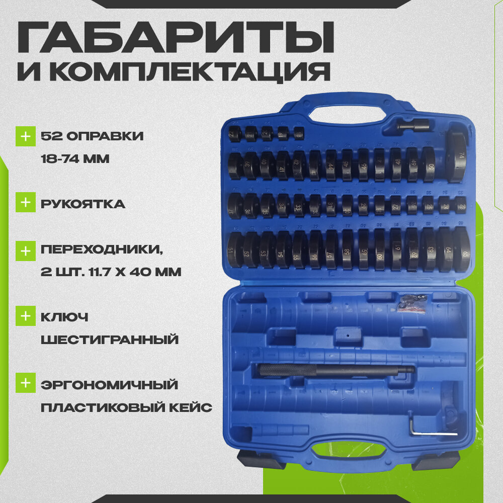 Набор оправок для выпрессовки подшипников, втулок, сальников 52 предмета, 18-74 мм, маякавто: сравнение цен, характеристики, фото, актуальное наличие и цены.