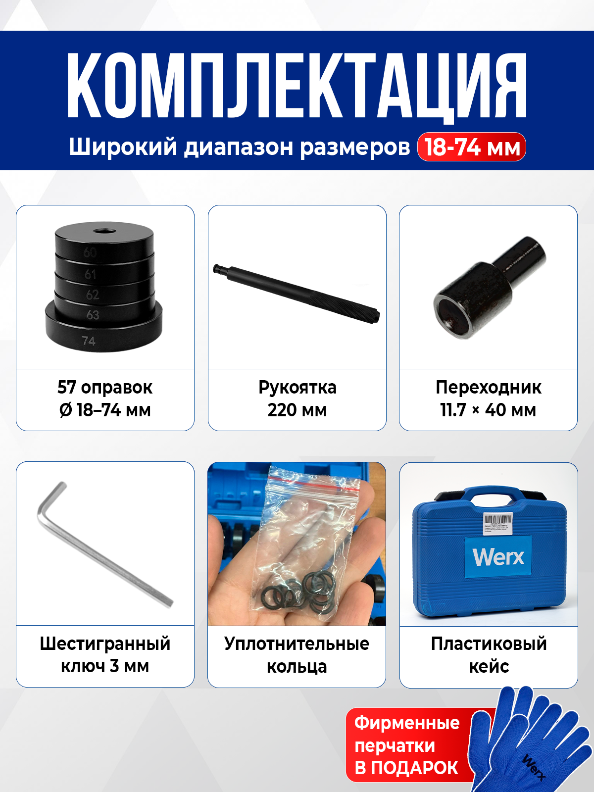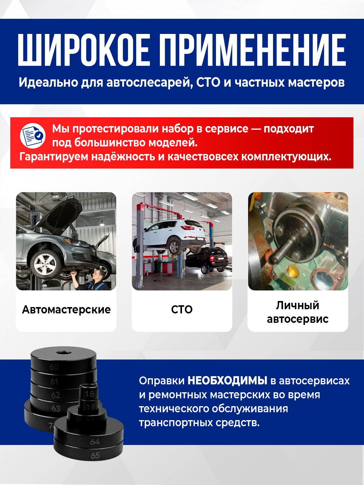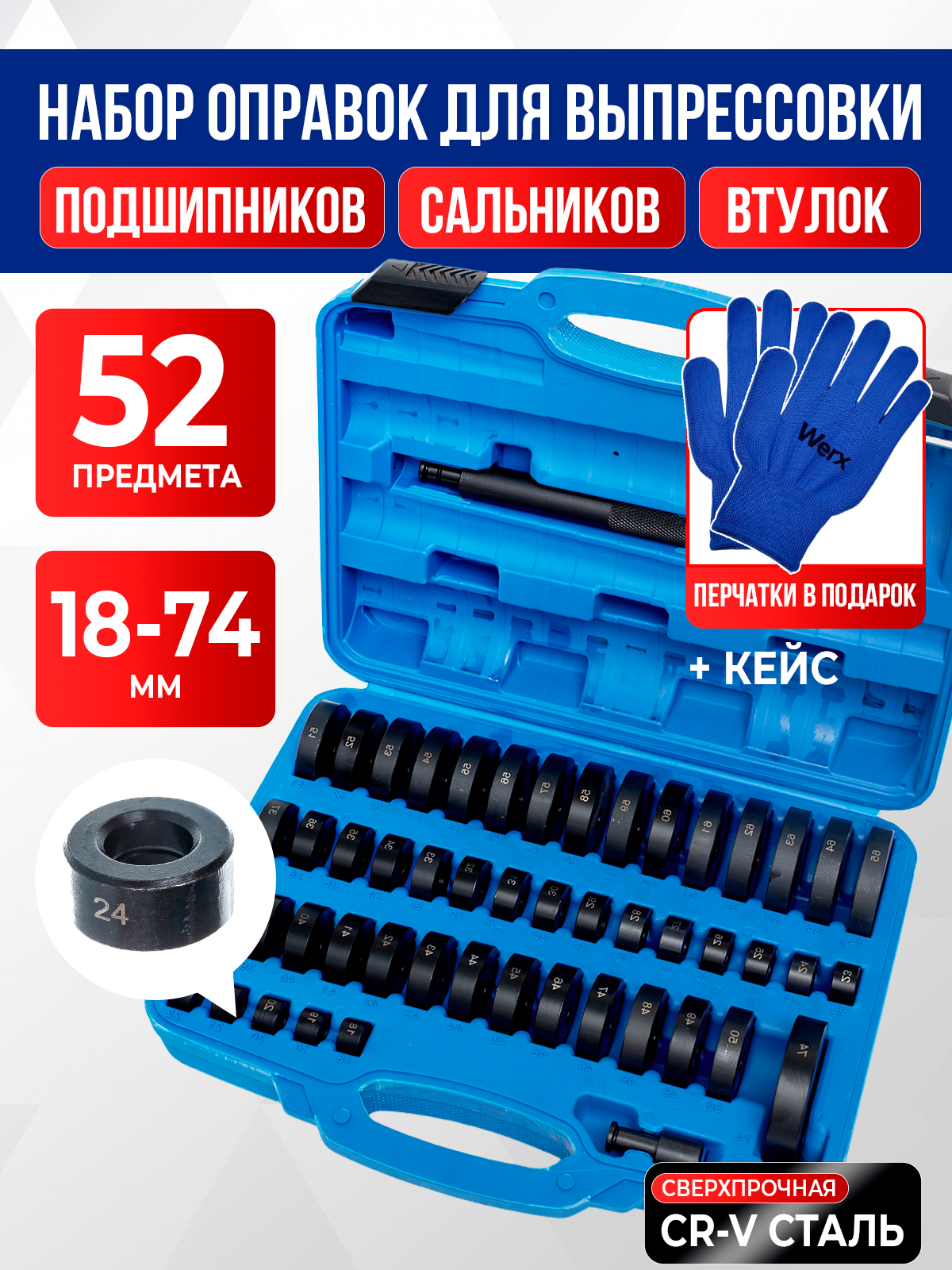 Набор оправок для выпрессовки подшипников, втулок, сальников, 52 предмета, в кейсе: сравнение цен, характеристики, фото, актуальное наличие и цены.