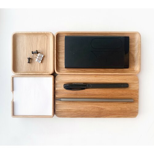 Набор органайзеров для хранения канцелярских принадлежностей, стильный вариант для вашего рабочего места. Ничего лишнего, все по местам. Универсальный, лаконичный, эстетичный, подойдет для личного использования или на подарок. Можно дополнить другими моделями из нашей коллекции органайзеров.