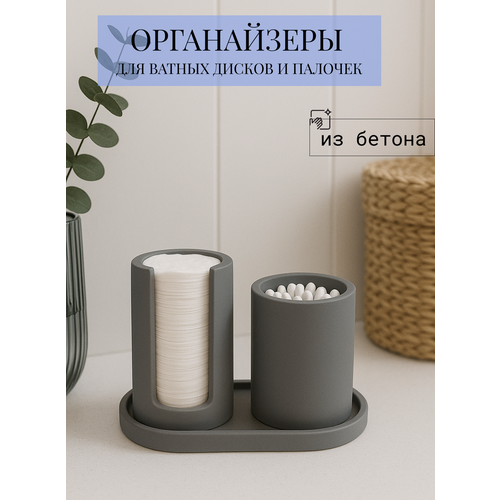 Стильный набор аксессуаров ручной работы - это красивый декор для ванной комнаты и туалета дома или квартиры. Материалы изделия - гипс / бетон. Эстетичный комплект включает 3 предмета – органайзер для ватных дисков, стакан для ушных палочек в котором можно хранить не только ушные палочки, но и заколки, резинки, украшения, косметические кисти и другие мелочи, декоративную подставку. Интерьерные декоративные контейнеры для хранения имеют стильную матовую поверхность, их можно разместить на раковине или на полочке, в шкафу, на косметическом столе. Многофункциональные изделия обеспечат не только красоту и порядок, но и удобство хранения гигиенических принадлежностей, сделают помещение уютным. Стакан и подставку - держатель можно использоваться как настольные комнатные органайзеры - для хранения разных вещей - украшений или мелочей в спальне или детской комнате. Благодаря своей компактности, подставка для ватных дисков и ватных палочек не занимает много места на полке или на раковине, что делает ее идеальной для небольшой ванной комнаты. Полезный набор дополнит стильное оформление помещения и впишется в любой дизайн, обеспечит удобство в организации хранения гигиенических принадлежностей и средств ухода. Подходит как для домашних санузлов, так и для ванных комнат отелей, салонов красоты, спален, детских комнат. Комплектуется самоклеющимися силиконовыми накладками, благодаря которым поверхность вашей столешницы или раковины будет защищена от царапин. Отличный вариант для квартир женщин и мужчин, девушек и парней, а также семейных пар. Изделия в лаконичном дизайне - это лучший подарочный сюрприз для каждой хозяйки на день рождения или любой праздник. Такой подарок - приведет в восторг маму, бабушку или подругу, сестру, родителей, коллегу.