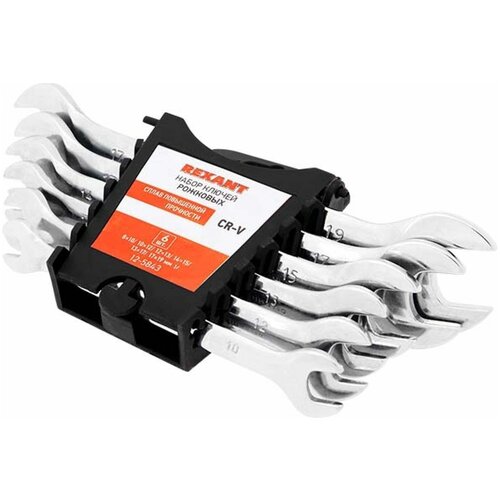 Набор рожковых гаечных ключей REXANT предназначен для монтажа и демонтажа резьбовых соединений: болтов, гаек, муфт и т. д. Хромованадиевый сплав, из которого изготовлены ключи, обладает такими свойствами, как прочность, жесткость, устойчивость к износу. Во время прокаливания он менее подвержен деформациям и потере первоначальной формы, чем другие типы инструментальной стали. Хромовое покрытие защищает рожковые ключи от образования ржавчины, продлевает их срок службы. Инструменты просты в обращении и обеспечивают доступ к любому крепежу. Гаечные ключи применяются в быту, слесарных мастерских и на производстве. Набор поставляется в пластиковом футляре для удобного хранения и транспортировки.
