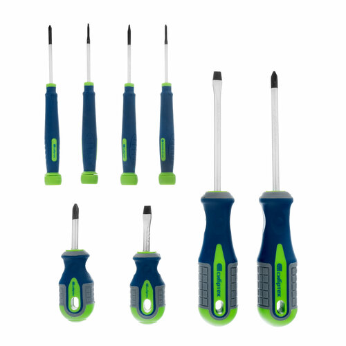 Универсальный набор отверток Сибртех 13375 включает 8 предметов из стали CrV с трехкомпонентными рукоятками, рассчитанных на бытовое использование. Отвертки предназначены для монтажа/демонтажа стандартных крепежных элементов и микровинтов с профилем SL и PH. Длина стержней 38-100 мм позволяет работать в узких пространствах и небольших углублениях.