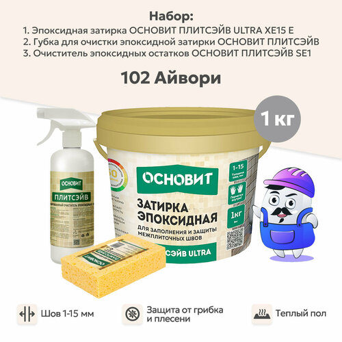 Набор основит ULTRA 102 айвори 1кг(1шт) + очист эп. ост. спр. SЕ1(1шт) + губка цел.(1шт): сравнение цен, характеристики, фото, актуальное наличие и цены.