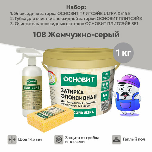 Купить Набор основит ULTRA 108 жемчужно-серый 1кг(1шт) + очист эп. ост. спр. SЕ1(1шт) + губка цел.(1шт) с доставкой по всей России.