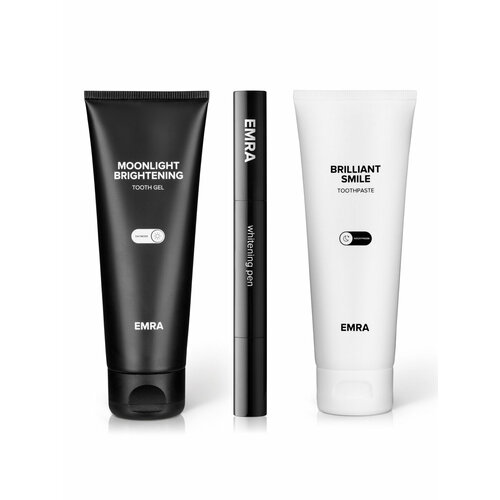 Набор "Отбеливание и уход за зубами" включает в себя дневной зубной гель Moonlight Brightening, ночную зубную пасту Brilliant Smile и отбеливающий карандаш Whitening pen.