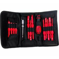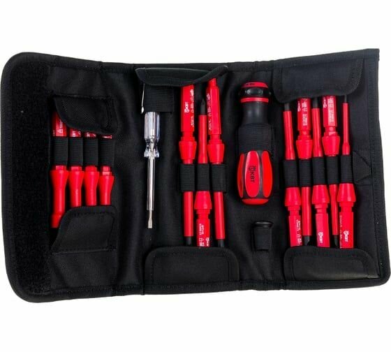 Набор диэлектрических отверток КВТ НИО-1113 61950 - комплект для электромонтажных работ, состоящий из эргономичной рукоятки и различных стержней с изоляцией. Комплектуется сумкой для переноски на поясе. На каждую отвертку нанесено обозначение типоразмера.