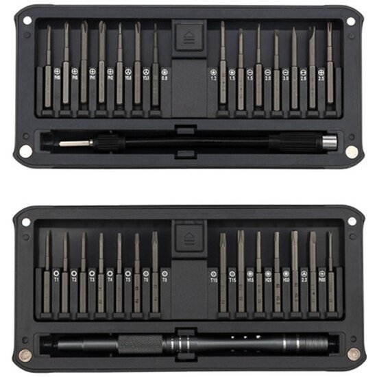 Отвертка с битами для точных работ KRANZ RA-02, сталь S2, 30 предметов KR-12-4752 отлично подходит для ремонта телефонов, компьютеров, приемников и для многих популярных приборов, которые используются в быту.Выполнен из качественной инструментальной стали S2, обладающей высокой прочностью к механическим повреждениям.Точно подобранные по характеристикам магнитные насадки отлично подходят для профессионального ремонта и для мелких бытовых работ.Компактный кейс удобен в транспортировке и с легкостью открывается одной рукой.Посадка бит: 5/32 дюйма