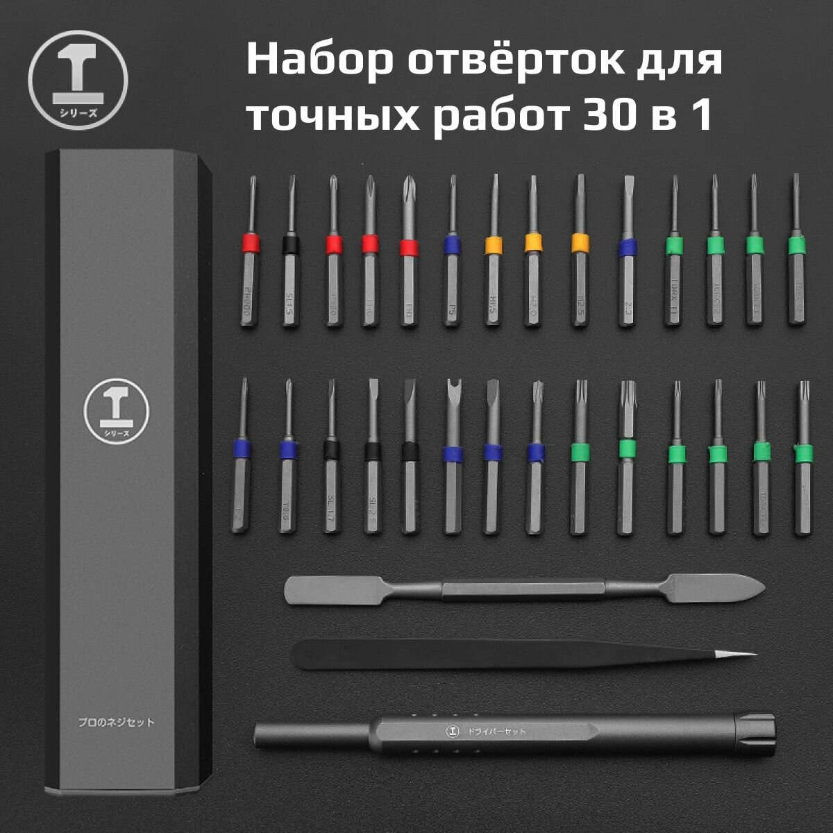 Осуществляйте точные ремонтные работы с нашим портативным набором отверток — 30 инструментов в одном компактном кейсе.