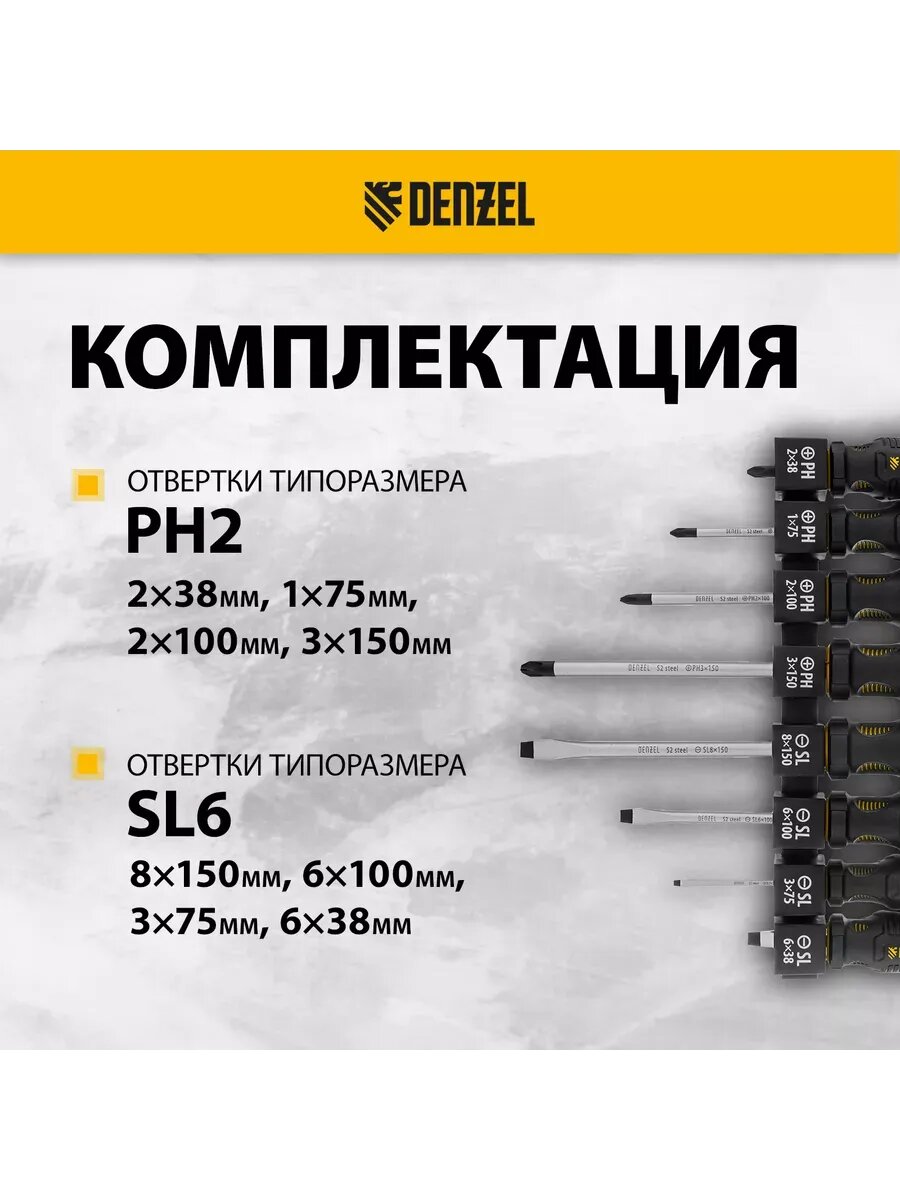 Купить Набор отверток SL, PH, 8 шт, S2, 3-к рукоятка, DENZEL 122137 с доставкой по всей России. Набор отверток SL, PH, 8 шт, S2, 3-к рукоятка, DENZEL 122137: сравнение цен, характеристики, фото, актуальное наличие и цены.