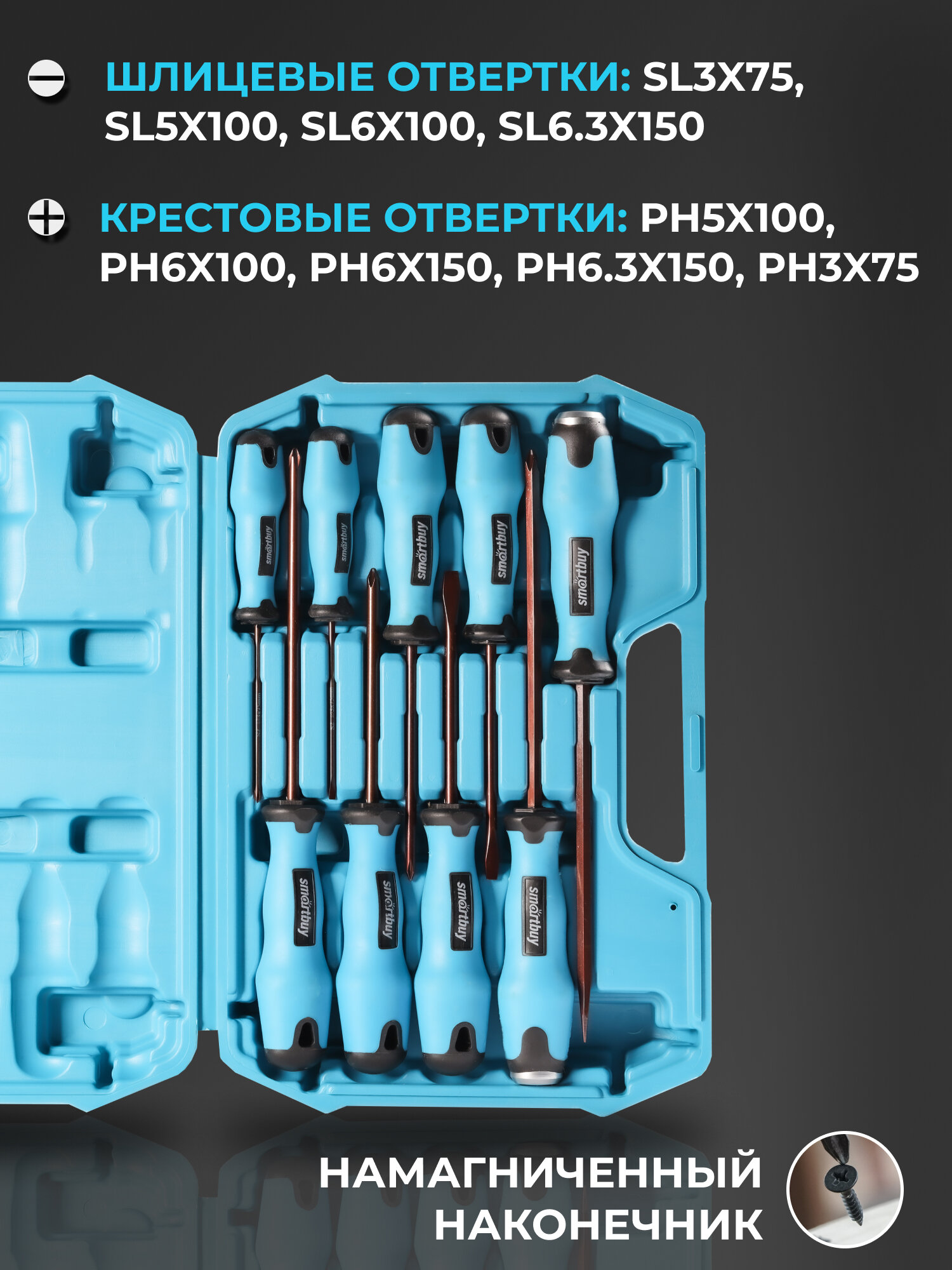 Набор отверток SmartBuy, 9 шт, сталь S2, эргономичные рукоятки, магнитный наконечник: сравнение цен, характеристики, фото, актуальное наличие и цены.
