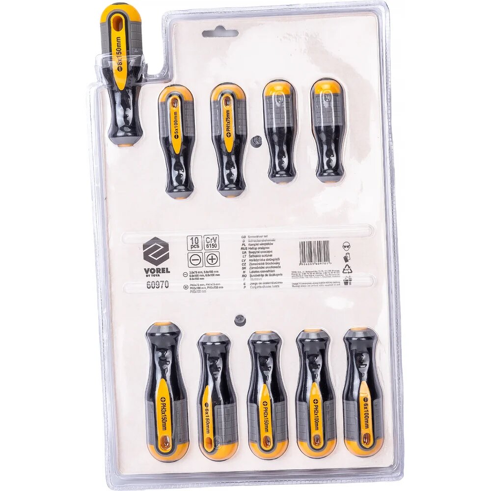 Набор отверток VOREL 10шт 60970: сравнение цен, характеристики, фото, актуальное наличие и цены.
