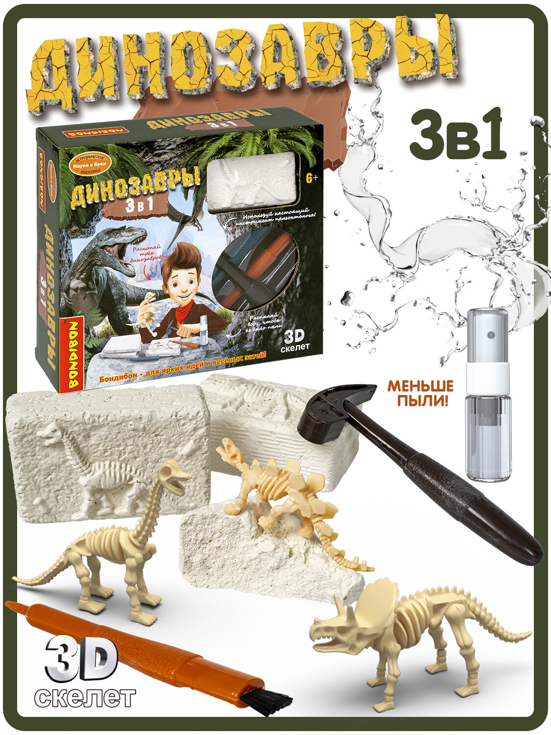 Купить Набор палеонтолога «динозавры 3 в 1», стегозавр, брахиозавр, трицератопс, Исторические раскопки Науки с Буки Bondibon с доставкой по всей России.