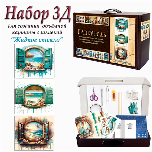Купить Папертоль, набор для творчества » Окна. Морская Идиллия.» с жидким стеклом. Магия Хобби, , создание 3D картины, для домашнего декора. с доставкой по всей России.