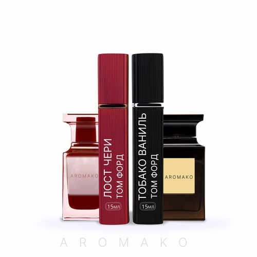Набор парфюм-миниатюр по мотивам легендарного ТОМ Форд. Два потрясающих аромата-Лост черри и Табак ваниль в подарочной коробке. Топ-ароматы в формате спрея по 15 мл. Набор станет прекрасным подарком по любому поводу-на день учителя, на Новый год, день рождения, годовщину,8 марта и др. Духи по мотивам Tom Ford "Lost Cherry" откровенный и соблазнительный, чарующий и полный чувств аромат. Путешествие от начала искушения происходит с нотами спелой вишни, ликера и горького миндаля. Усиливается и в сердечных этюдах вишня с помощью розы, жасмина. Завершением звучания аромамелодии является перуанский бальзам. Духи по мотивам Tom Ford "Tobacco Vanille" унисексовый, уникальный и дорогой аромат. На женщинах раскрывается более ванильно-шоколадным звучанием, а на мужчинах выделяются листья табака и цветы. Жемчужина среди всех ароматов Тома Форда, которая не оставит равнодушным ни окружающих, ни носителей аромата. Компактный размер флакона удобно брать с собой не только на работу, но и в путешествие, поездки, командировки или поход.