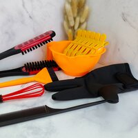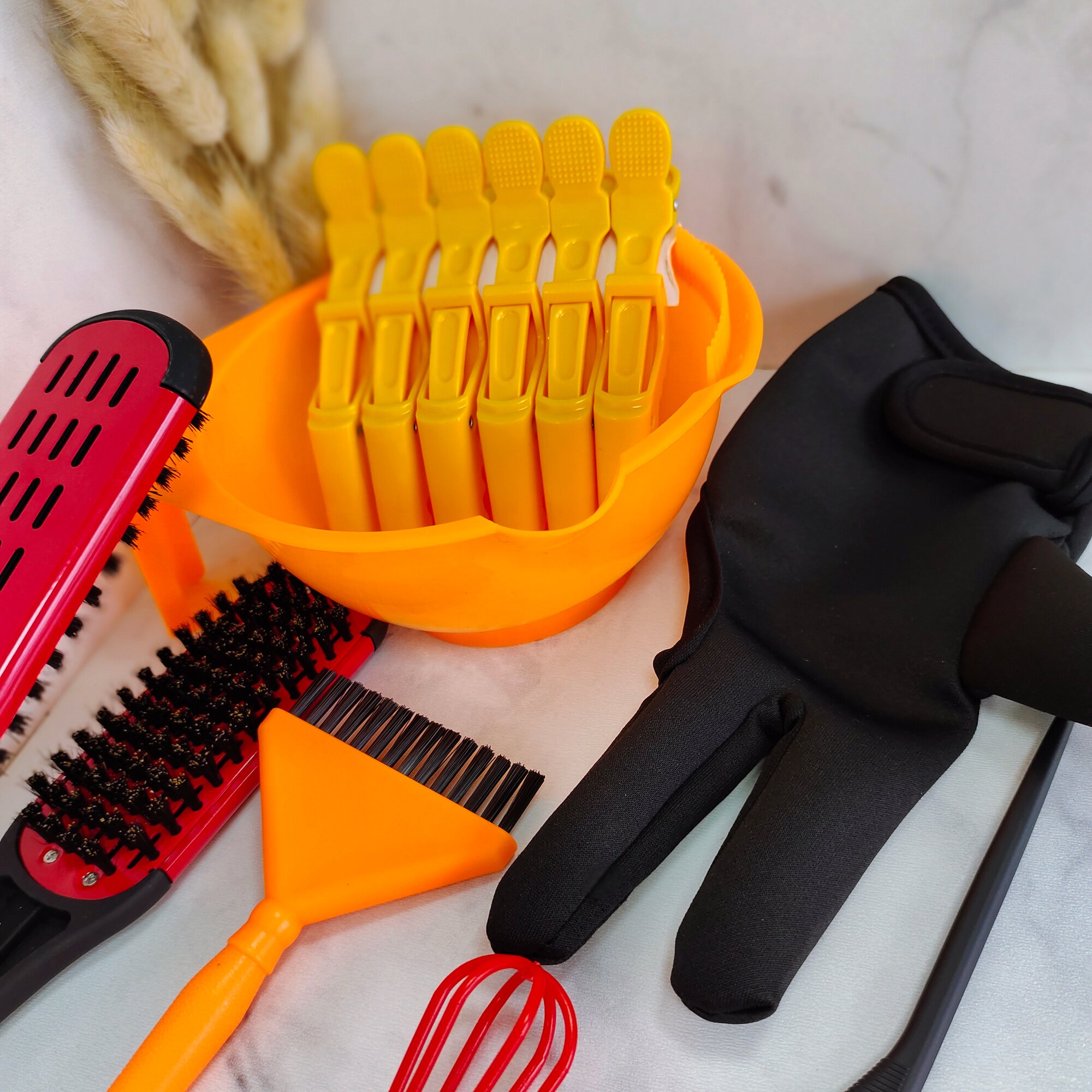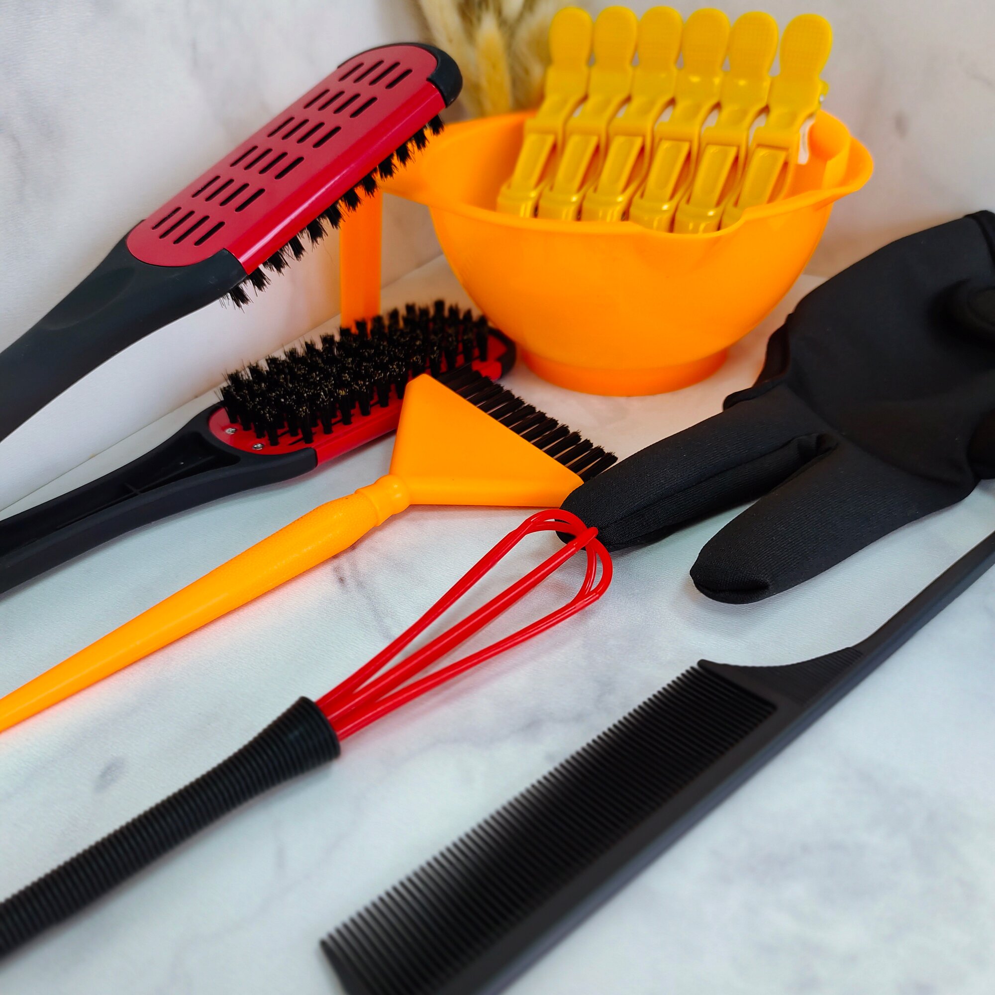 Мисочка, расчёска зажимная, зажимы для волос, кисть, расчёска карбоновая с хвостиком, термоперчатка на три пальца, венчик