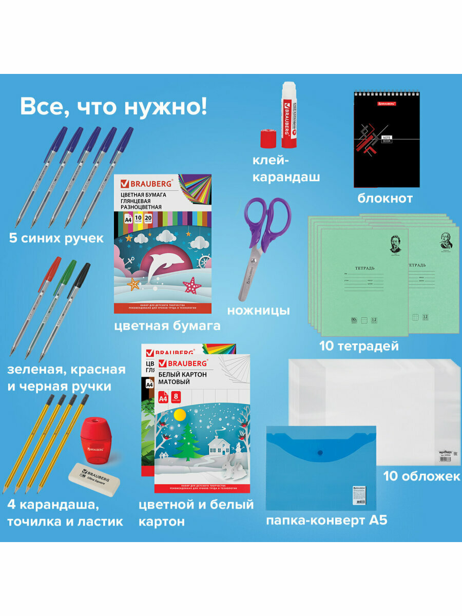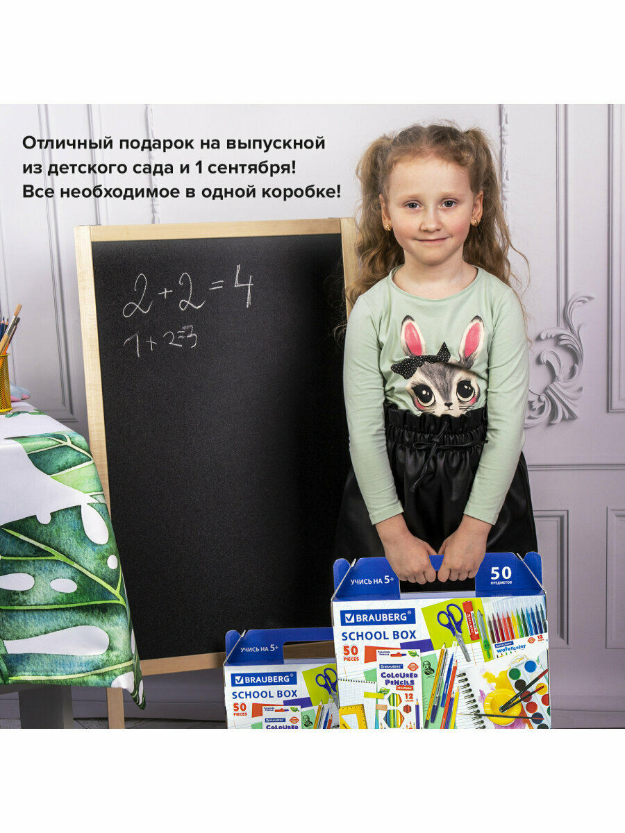 Набор первоклассника, школьника канцелярский в подарочной коробке Brauberg Школьный Универсальный, 50 предметов, Комплект 4 штуки, 880805: сравнение цен, характеристики, фото, актуальное наличие и цены.