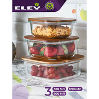 Набор пищевых контейнеров для еды ELEY из жаропрочного стекла 3 штуки с крышкой из акации: 520 мл, 800 мл и 1200 мл: сравнение цен, характеристики, фото, актуальное наличие и цены.
