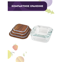 Купить Набор пищевых контейнеров для еды ELEY из жаропрочного стекла 3 штуки с крышкой из акации: 520 мл, 800 мл и 1200 мл с доставкой по всей России.