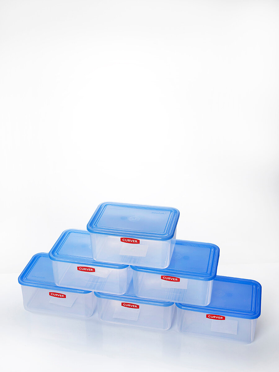В комплект входят 6 контейнеров объемом 2 литра каждый. Это позволяет удобно организовать хранение различных продуктов, таких как фрукты, овощи, мясо, рыба и многое другое.