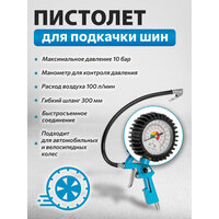 Краскораспылитель HVLP, металлический бачок краскораспылителя, пистолет моечный, пистолет для подкачки шин с манометром, пистолет продувочный, шланг спиральный;