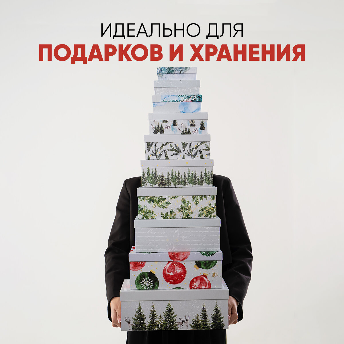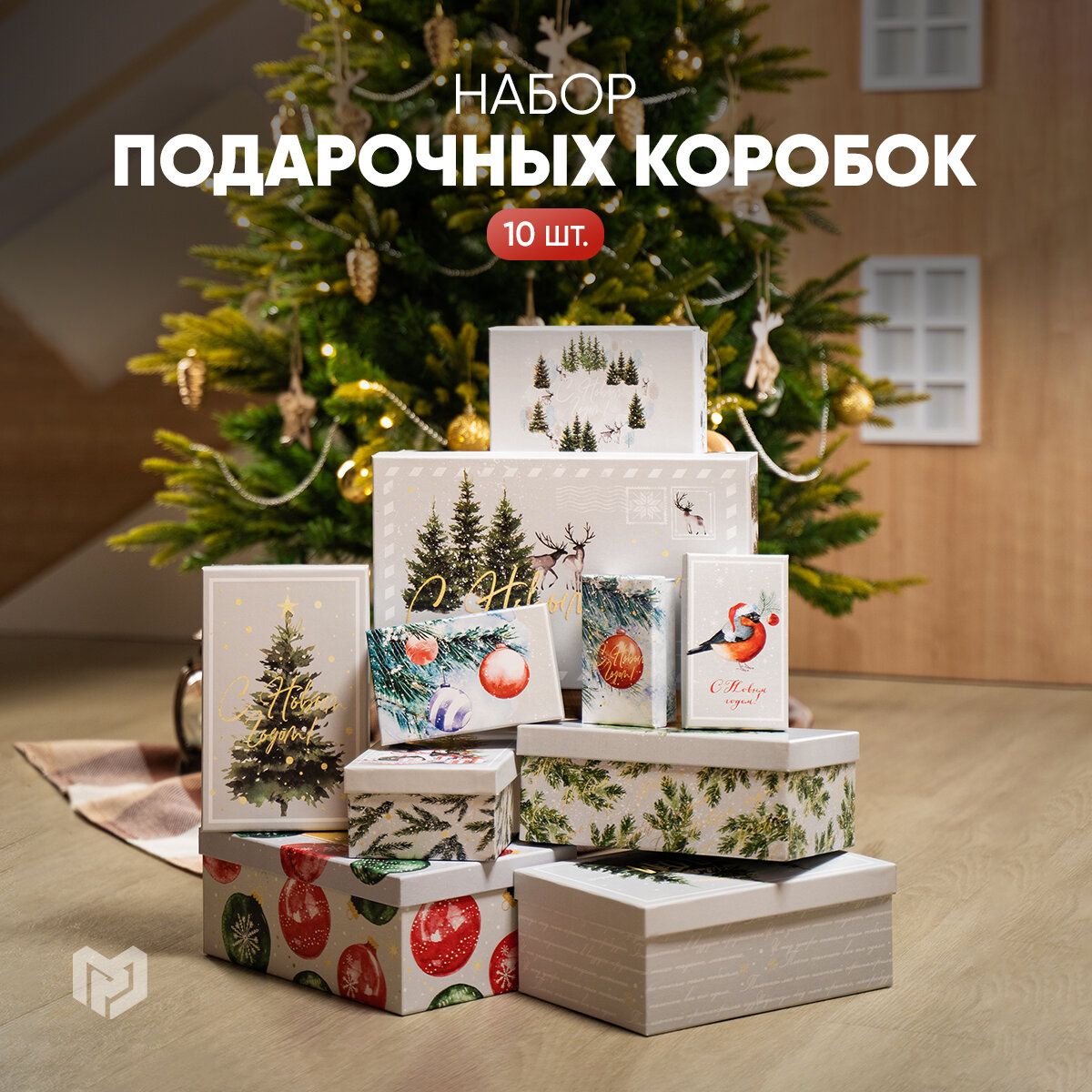 В наборе представлены 10 разных коробок, каждая из которых имеет свой уникальный размер. Это позволяет упаковать подарок любого размера, будь то небольшая кружка или большая коробка с кондитерскими изделиями.