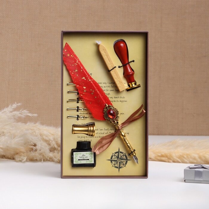 Набор подарочный 5 в 1 «Реликвия», перьевая ручка розовая, чернила, печать, воск: сравнение цен, характеристики, фото, актуальное наличие и цены.