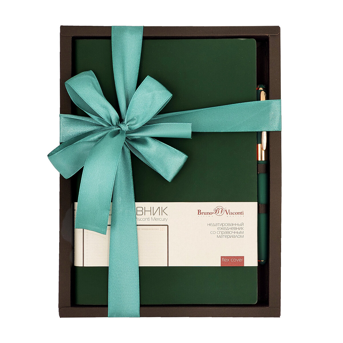 Купить Набор подарочный Bruno Visconti «MERCURY» (ежедневник недатированный, цветной срез, зеленый А5 и ручка шариковая подарочная) арт.3-435/03-2 с доставкой по всей России.