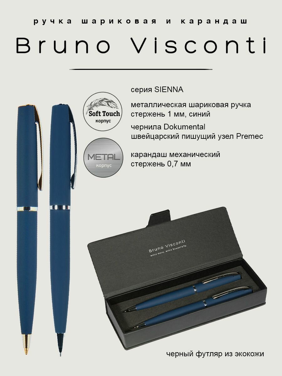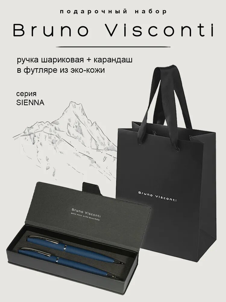 Набор подарочный BrunoVisconti шариковая автоматическая ручка 1 мм, синяя SIENNA (синий корпус) + механический карандаш 0.7 мм: сравнение цен, характеристики, фото, актуальное наличие и цены.