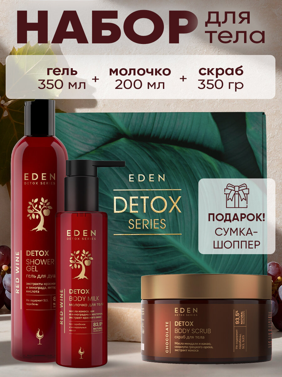 Набор подарочный EDEN DETOX Red Wine гель для душа, молочко, скраб: сравнение цен, характеристики, фото, актуальное наличие и цены.