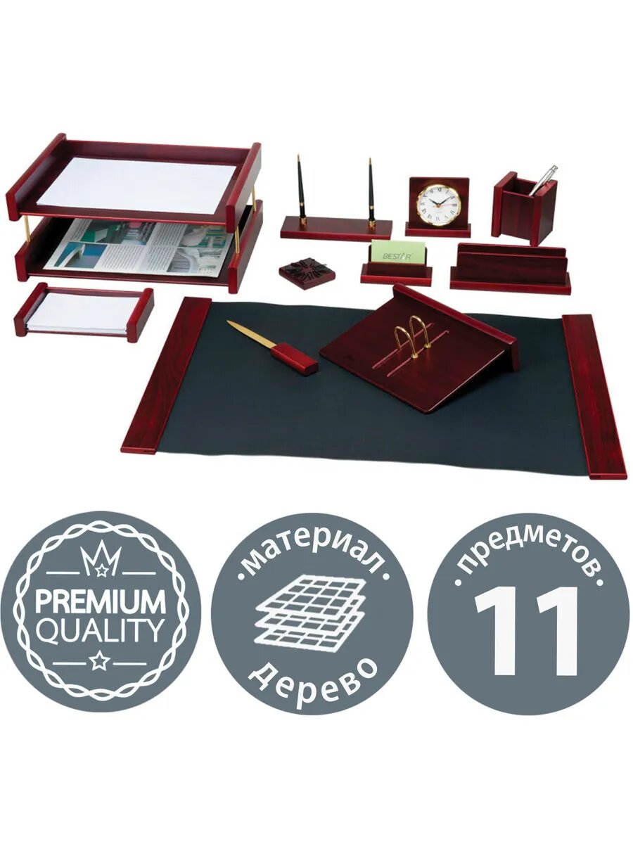 Купить Набор подарочный настольный, дерево, 11 предметов с доставкой по всей России.