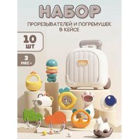 Купить Набор погремушек и прорезывателей для новорожденных в кейсе 10 штук развивающий, пластик/силикон с доставкой по всей России.