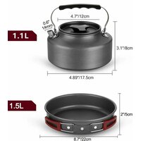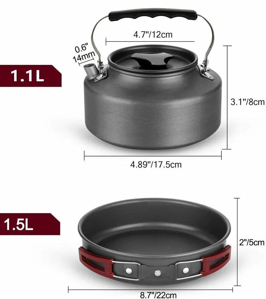 Набор посуды туристический из анодированного алюминия, кастрюля, сковорода для пикника, чайник походный костровой для путешествий, охоты, рыбалки