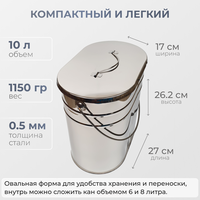 Котелок на 10 литров: Габариты (высота, длина, ширина, мм): 265*290*170; Вес 1126 гр