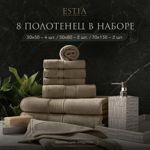Купить Estia «Мартос» комплект полотенец 30х50-4/50х80-2/70х130-2 хлопок, бежевый 500 г/м2, 8 пр. с доставкой по всей России.