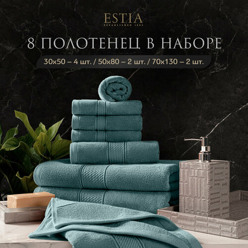 Купить Estia «Мартос» комплект полотенец 30х50-4/50х80-2/70х130-2 хлопок, светло-зеленый 500 г/м2, 8 пр. с доставкой по всей России.