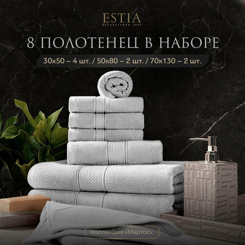 Купить Estia «Мартос» комплект полотенец 30х50-4/50х80-2/70х130-2 хлопок, белый 500 г/м2, 8 пр. с доставкой по всей России.
