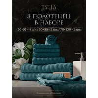 Купить Estia «Торлей» комплект полотенец 30х50-4/50х80-2/70х130-2 хлопок, морской, 500 г/м2, 8-пр. с доставкой по всей России.