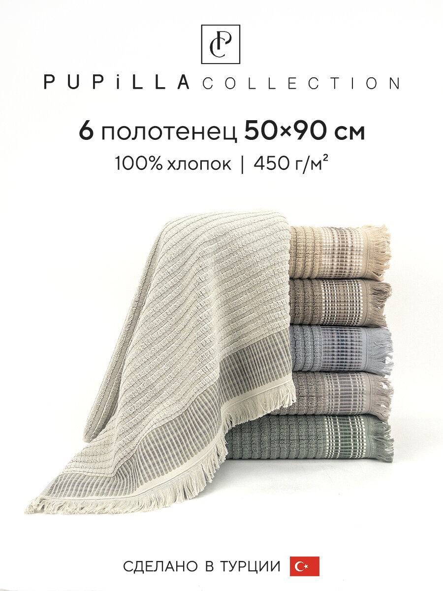 Набор полотенец для ванной 6 шт. Pupilla EKOSE, махра, 100% хлопок, 50х90 см: сравнение цен, характеристики, фото, актуальное наличие и цены.
