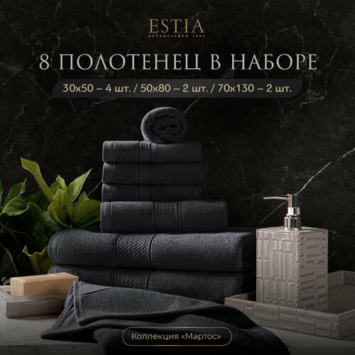 Estia «Мартос» комплект полотенец 30х50-4/50х80-2/70х130-2 хлопок, темно-серый 500 г/м2, 8 пр.: сравнение цен, характеристики, фото, актуальное наличие и цены.