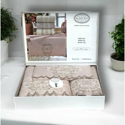 Купить Набор полотенец Karven DAMASK кружевной гипюр бамбук 30*50/50*90/70*140 HS 1717 V3 пудра с доставкой по всей России. Набор полотенец Karven DAMASK кружевной гипюр бамбук 30*50/50*90/70*140 HS 1717 V3 пудра: сравнение цен, характеристики, фото, актуальное наличие и цены.