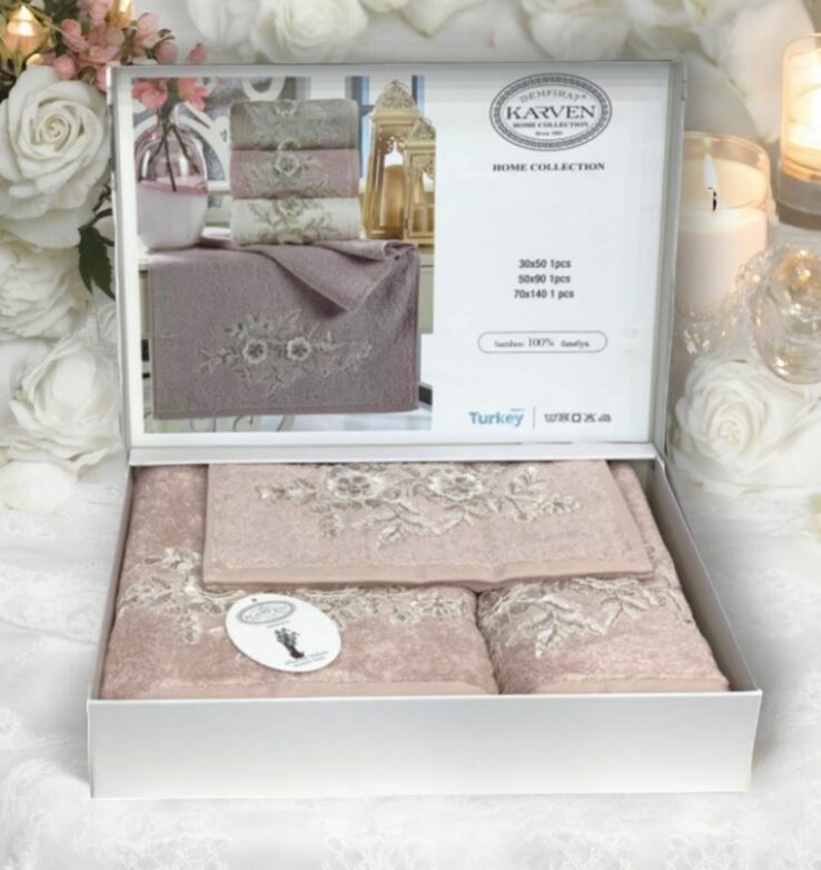 Купить Набор полотенец Karven FLOWERS кружевной гипюр бамбук 30*50/50*90/70*140 HS 1717 V3 пудра с доставкой по всей России. Набор полотенец Karven FLOWERS кружевной гипюр бамбук 30*50/50*90/70*140 HS 1717 V3 пудра: сравнение цен, характеристики, фото, актуальное наличие и цены.