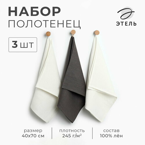 Набор полотенец кух. Этель Кitchen linen 40х70-3шт, 100% лён (комплект из 3 шт)