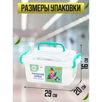 Ребенок с удовольствием поиграет в набор вдохновившись увиденным сюжетам из реальной жизни, поэтому играть в него ребенку будет интересно, и поучительно! Все инструменты компактно умещаются в контейнере. Это позволяет удобно перемещать и хранить набор. Набор производится на крупнейшем заводе детских игрушек " Полесье" по технологии немецкой компании Wader из высококачественного европейского сырья (без токсинов и фенолов) и пищевых красителей. Качество и безопасность для деток гарантировано! Безупречная обработка (пластик без зазубрин и неровностей), продуманная, надежная и безопасная для малышей конструкция игрушек.