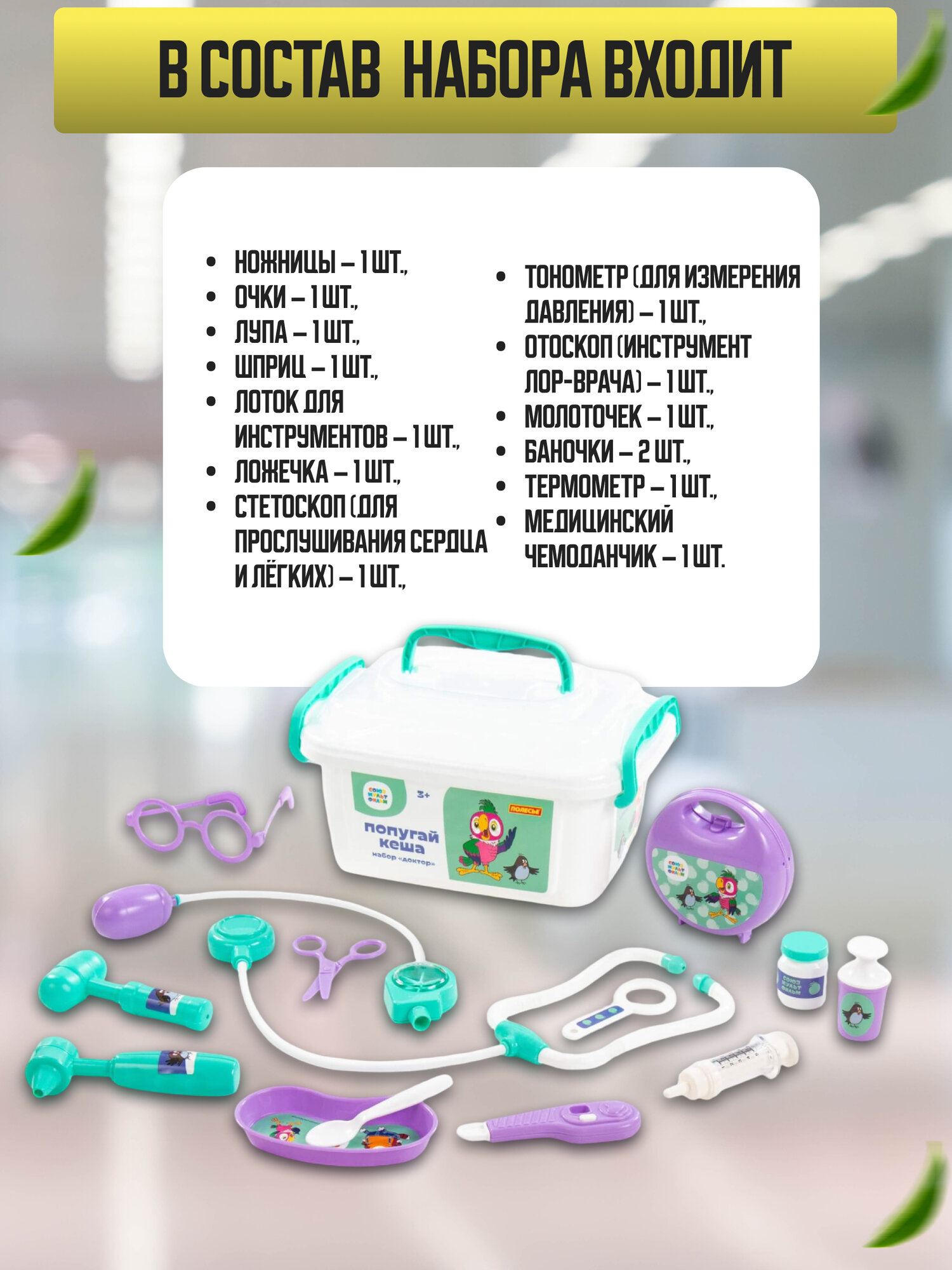 Детский набор доктора " Попугай Кеша" - отличный выбор игрушки для юного доктора. Он включает в себя интереснейшие инструменты, с помощью которых можно лечить любимые игрушки.