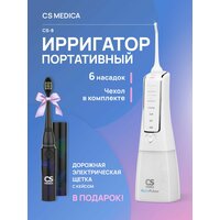Купить Набор портативный ирригатор полости рта CS Medica AquaPulsar CS-8 Elite MoonWhite (белый) и Электрическая звуковая зубная щетка CS Medica CS-9230-H с доставкой по всей России.